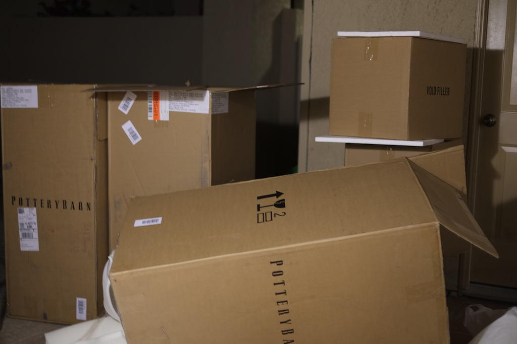 A bunch of boxes arrived tonight. We now have chairs at the counter, and we were able to sit quite civilized and have dinner. I thought that I would also include a photo of the living room (yes, I did hang that mirror all by myself). After it was hung I started wondering about earthquakes. Have I done it correctly for a house sitting right on top of the San Andreas Fault? Today I went to Ace Hardware and asked if the technique I used was correct for this part of the country. I also asked some residents at the complex. Everybody had the same response - if there is a good earthquake, the mirror will be the least of my worries. Only one person asked if it was above my pillow in the bedroom.
